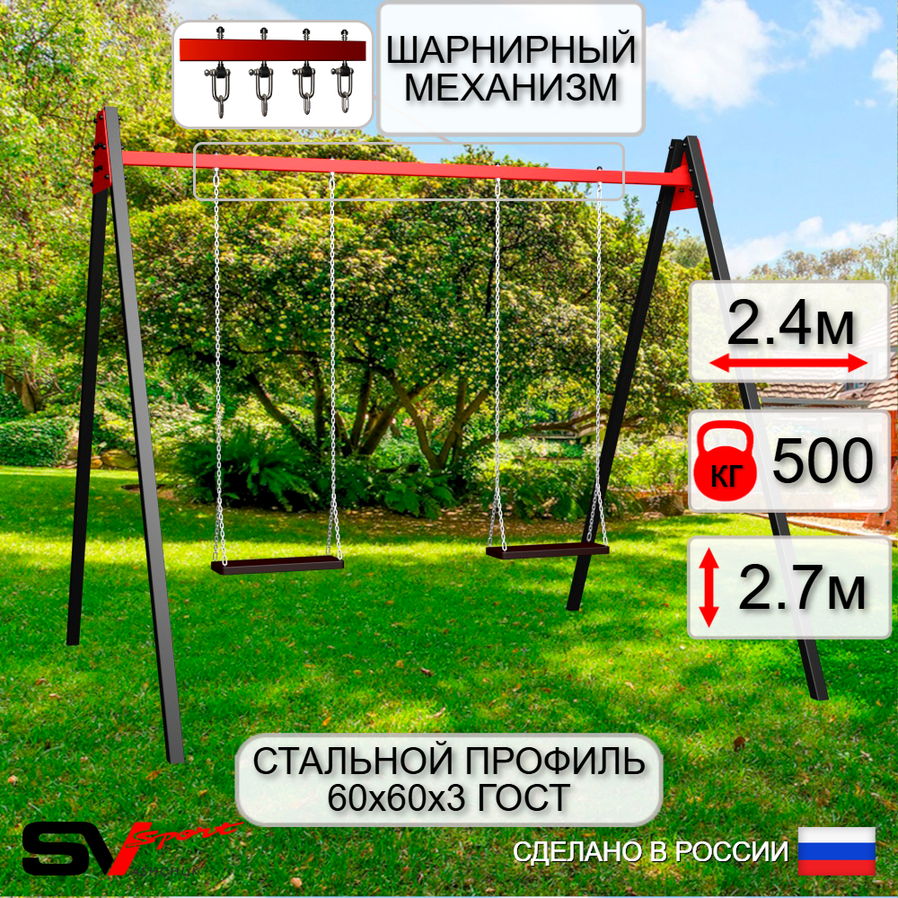 КОМПЛЕКТАЦИЯ: Каркас УК Sv Sport Maxi 2.4м, Качели деревянные на цепях Sv Sport 2шт, Подвесы для качелей на втулке Sv Sport 2 компл.