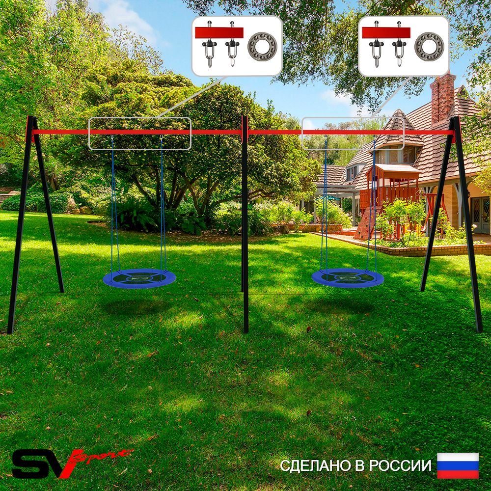 КОМПЛЕКТАЦИЯ: Каркас УК Sv Sport Maxi 6.0м, Качели - гнездо Оксф. 100см 2шт, Подвесы для качелей на подшипниках Sv Sport 2 компл.