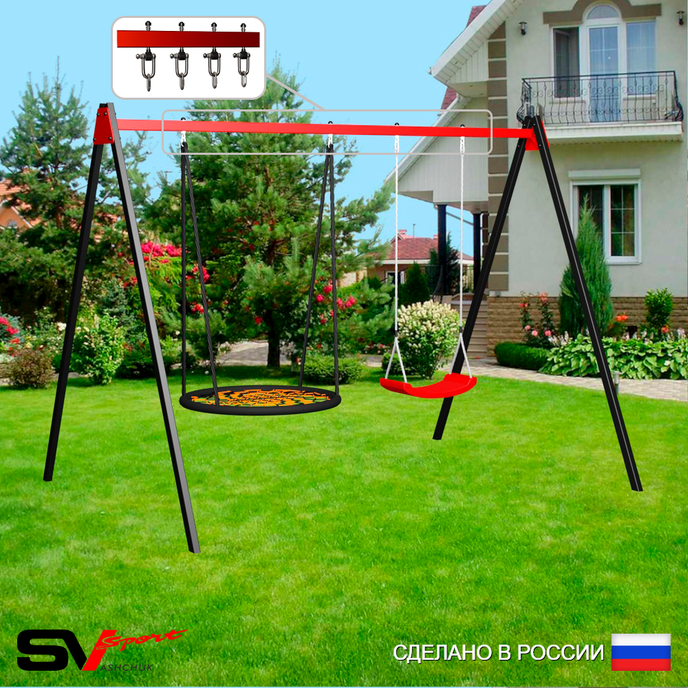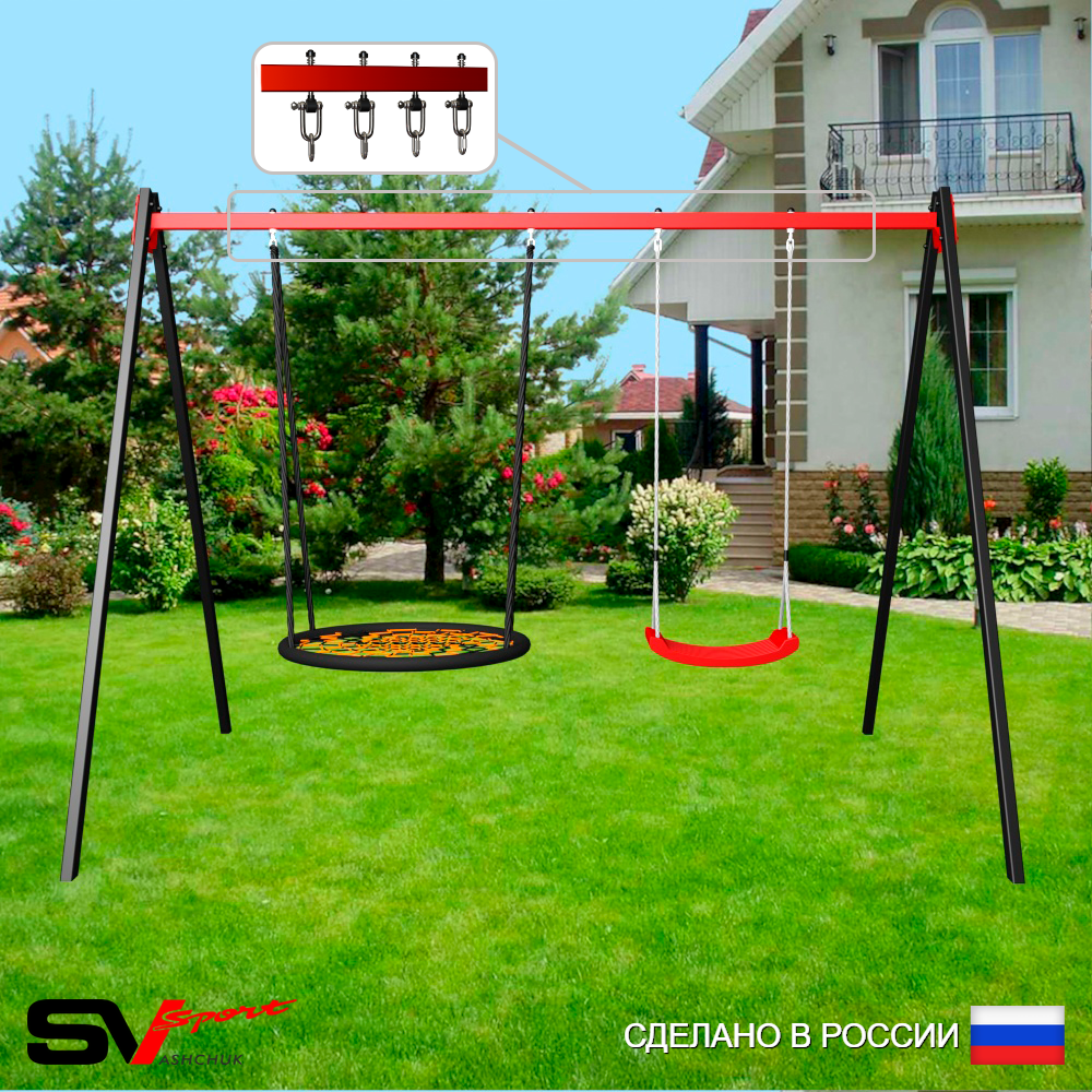 КОМПЛЕКТАЦИЯ: Каркас УК Sv Sport 3.0м, Качели - гнездо 80см, Качели пластиковые "Лодочка", Подвесы для качелей на втулке Sv Sport 2 компл.