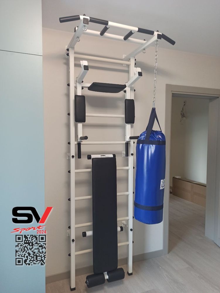 КОМПЛЕКТАЦИЯ: Шведская стенка Sv Pro, Турник Sv Pro к ШС, Брусья\стойка под штангу Sv Pro к ШС, Скамья для пресса и жима Sv Sport к ШС, Цепь удлинитель 90см, Мешок боксерский 22кг.
