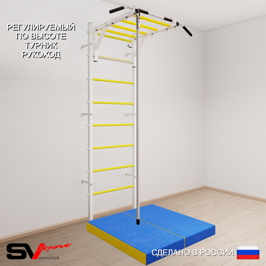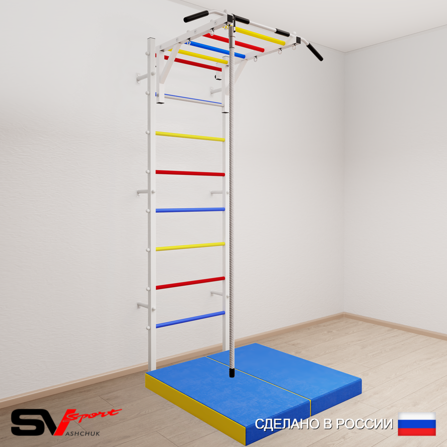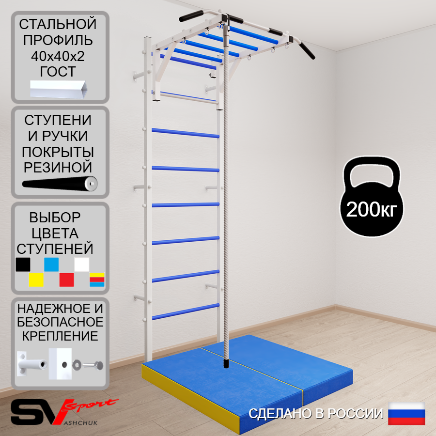 КОМПЛЕКТАЦИЯ: Шведская стенка Sv Sport (профиль вертикальных стоек 40 х 40 х 2 мм), Турник Sv Sport рукоход к ШС, Kанат, Спортивный мат 100 х 100 х 10 см складной.