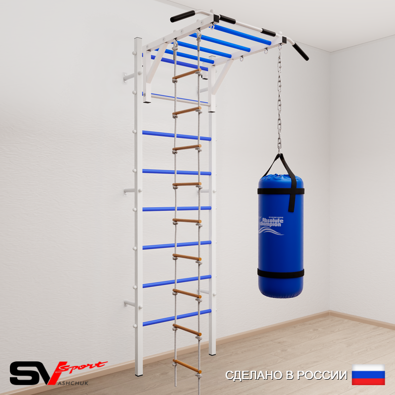 КОМПЛЕКТАЦИЯ: Шведская стенка Sv Sport (профиль вертикальных стоек 40 х 40 х 2 мм), Турник Sv Sport рукоход к ШС, Лестница веревочная, Цепь удлинитель 90см, Мешок боксерский 30кг.