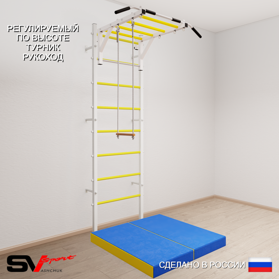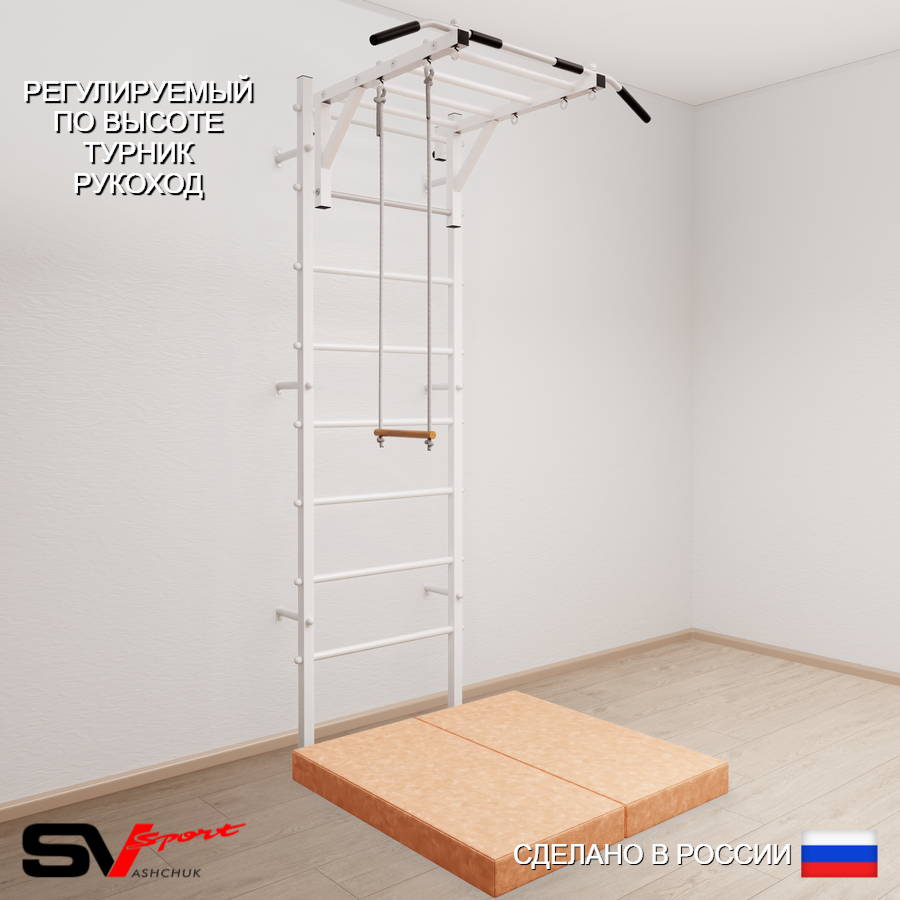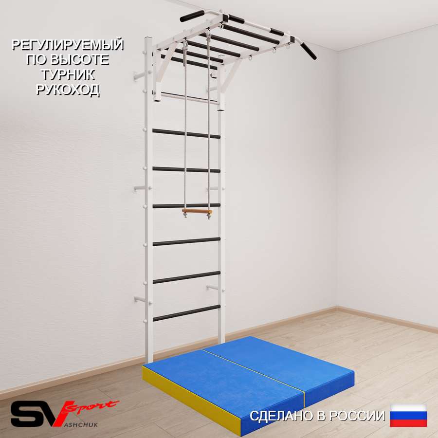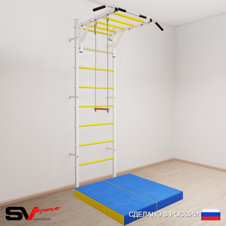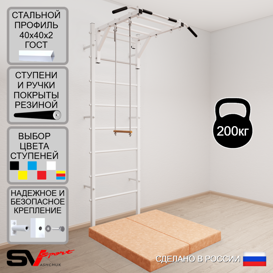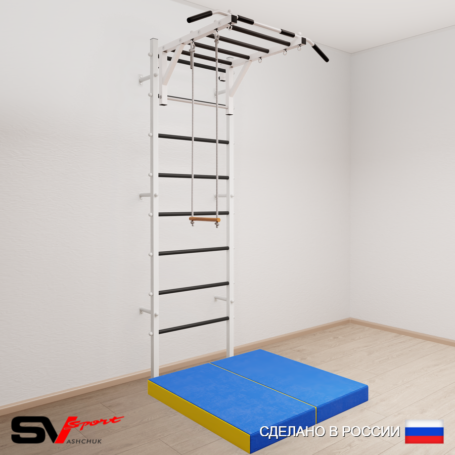 КОМПЛЕКТАЦИЯ: Шведская стенка Sv Sport (профиль вертикальных стоек 40 х 40 х 2 мм), Турник Sv Sport рукоход к ШС, Трапеция, Спортивный мат 100 х 100 х 10 см складной.