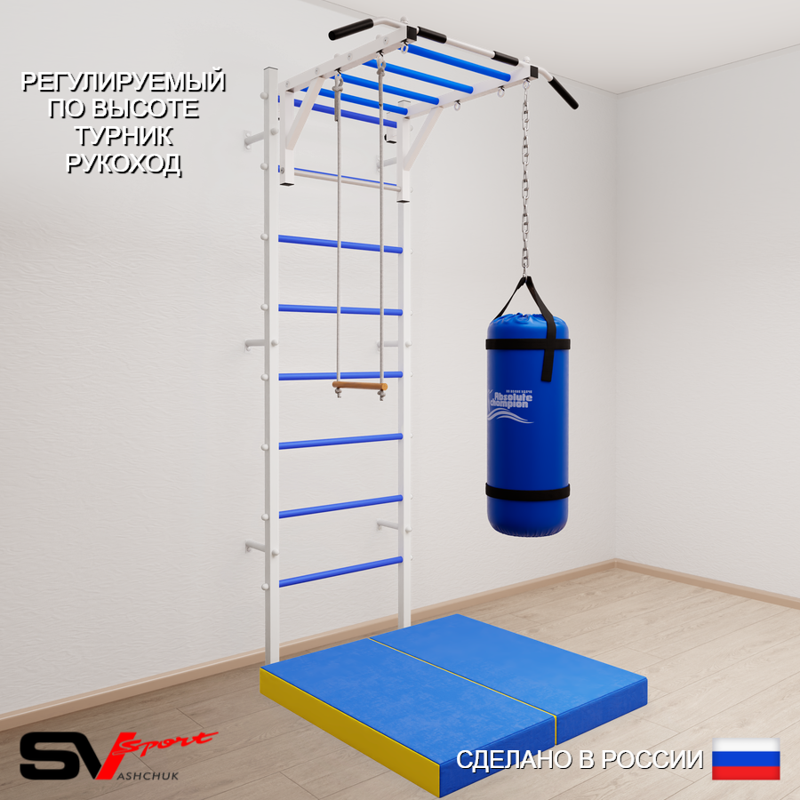 КОМПЛЕКТАЦИЯ: Шведская стенка Sv Sport (профиль вертикальных стоек 40 х 40 х 2 мм), Турник Sv Sport рукоход к ШС, Трапеция, Цепь удлинитель 90см, Мешок боксерский 15кг, Спортивный мат 100 х 100 х 10 см складной.