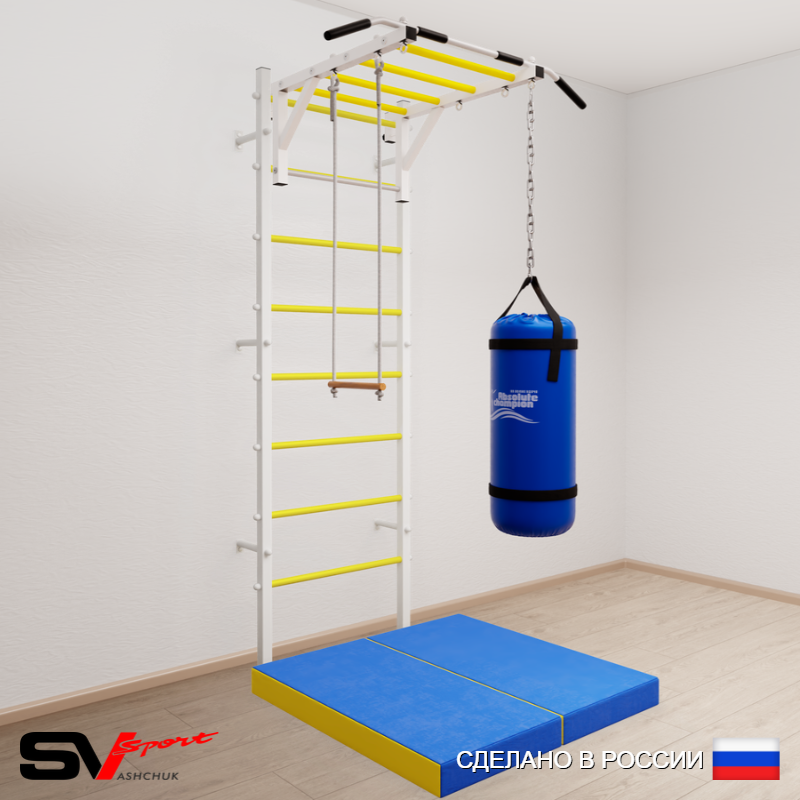 КОМПЛЕКТАЦИЯ: Шведская стенка Sv Sport (профиль вертикальных стоек 40 х 40 х 2 мм), Турник Sv Sport рукоход к ШС, Трапеция, Цепь удлинитель 90см, Мешок боксерский 30кг, Спортивный мат 100 х 100 х 10 см складной.