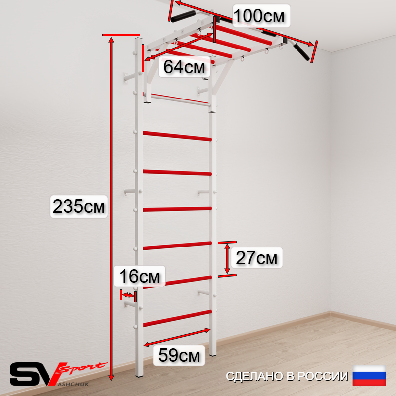 Идеальна для дома, обеспечивает комфортное и безопасное выполнение упражнений. Подходит для пользователей разного возраста и уровня подготовки. Компактные размеры позволяют легко разместить даже в небольшом помещении. Эргономичная конструкция обеспечивает устойчивость и долговечность эксплуатации. Купите шведскую стенку Sv Sport – вложите в здоровье и активный образ жизни без лишних затрат пространства и средств!