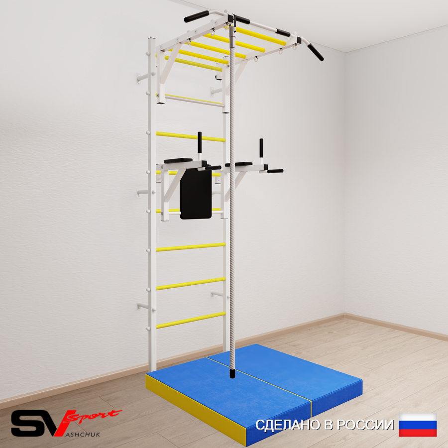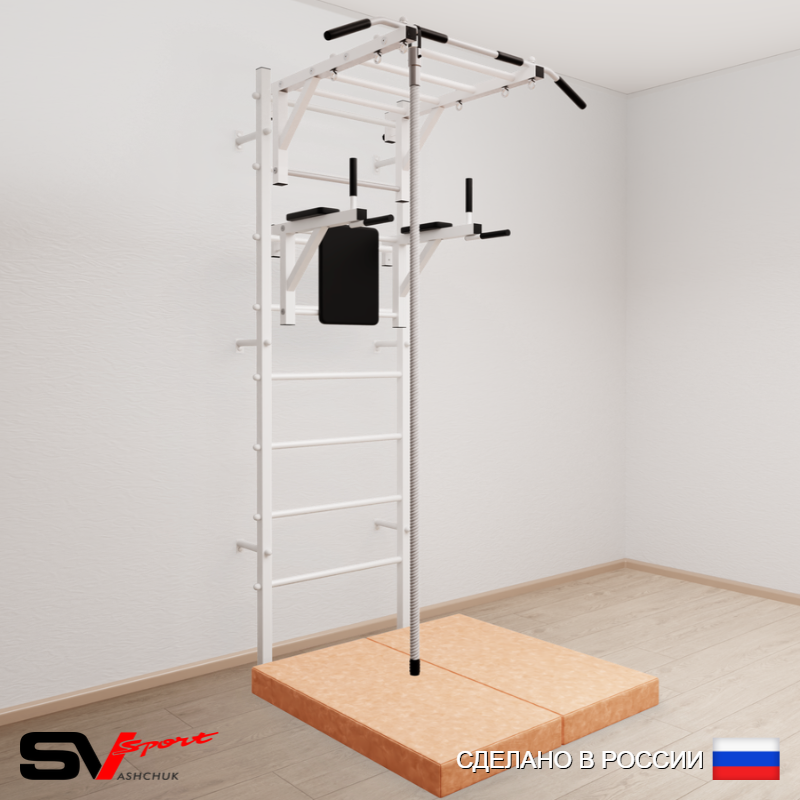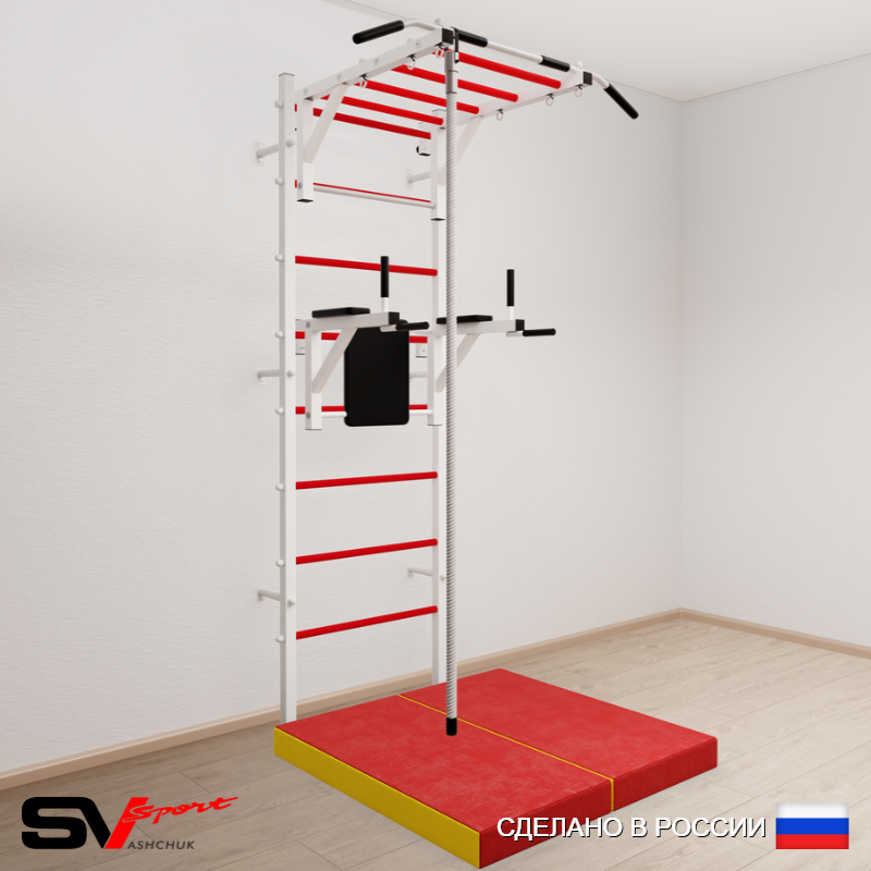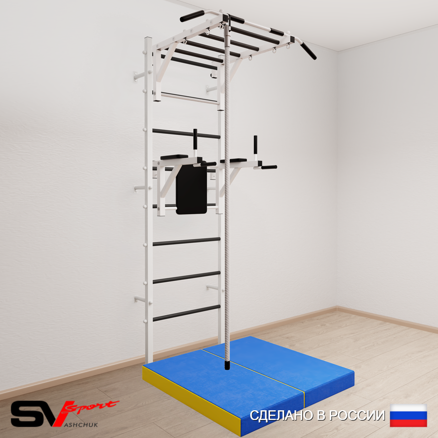 КОМПЛЕКТАЦИЯ: Шведская стенка Sv Sport (профиль вертикальных стоек 40 х 40 х 2 мм), Турник Sv Sport рукоход к ШС, Брусья Sv Sport к ШС, Kанат, Спортивный мат 100 х 100 х 10 см складной.