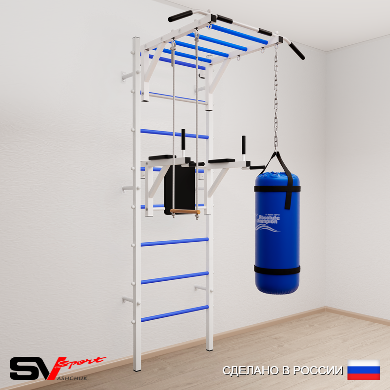 КОМПЛЕКТАЦИЯ: Шведская стенка Sv Sport (профиль вертикальных стоек 40 х 40 х 2 мм), Турник Sv Sport рукоход к ШС, Брусья Sv Sport к ШС, Трапеция, Цепь удлинитель 90см, Мешок боксерский 15кг.
