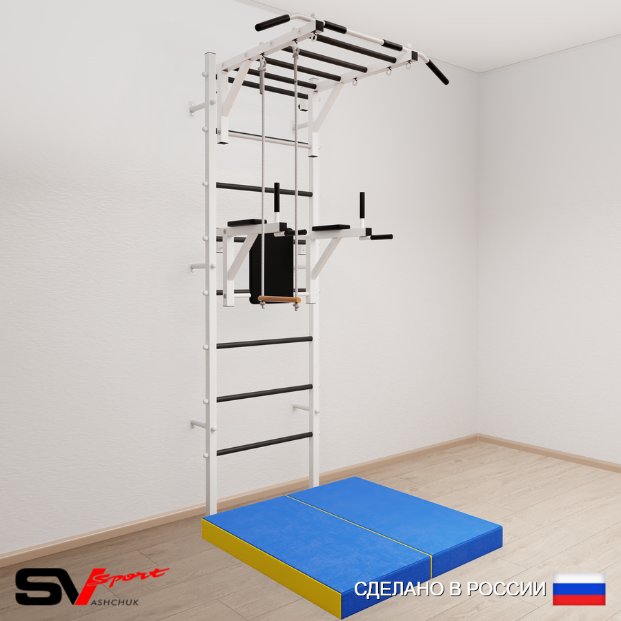 КОМПЛЕКТАЦИЯ: Шведская стенка Sv Sport (профиль вертикальных стоек 40 х 40 х 2 мм), Турник Sv Sport рукоход к ШС, Брусья Sv Sport к ШС, Трапеция, Спортивный мат 100 х 100 х 10 см складной.