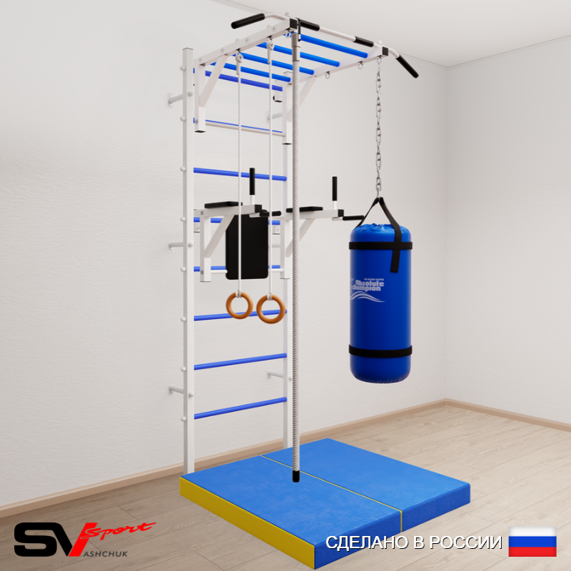 КОМПЛЕКТАЦИЯ: Шведская стенка Sv Sport (профиль вертикальных стоек 40 х 40 х 2 мм), Турник Sv Sport рукоход к ШС, Брусья Sv Sport к ШС, Kанат, Kольца деревянные, Цепь удлинитель 90см, Мешок боксерский 30кг, Спортивный мат 100 х 100 х 10 см складной.