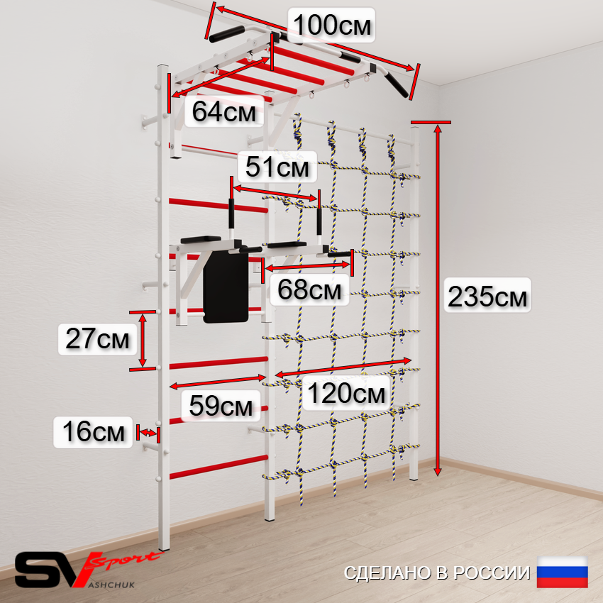 Идеальна для дома, обеспечивает комфортное и безопасное выполнение упражнений. Подходит для пользователей разного возраста и уровня подготовки. Компактные размеры позволяют легко разместить даже в небольшом помещении. Эргономичная конструкция обеспечивает устойчивость и долговечность эксплуатации. Купите шведскую стенку Sv Sport – вложите в здоровье и активный образ жизни без лишних затрат пространства и средств!