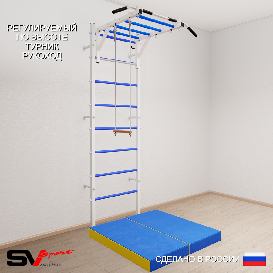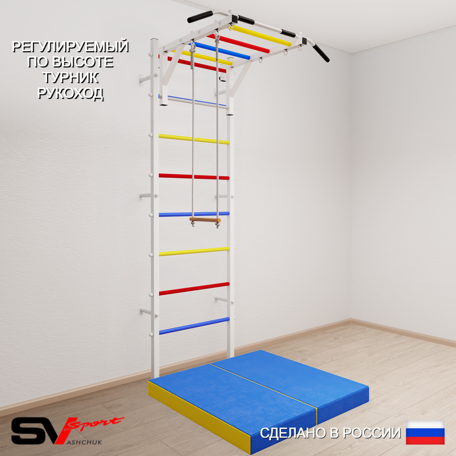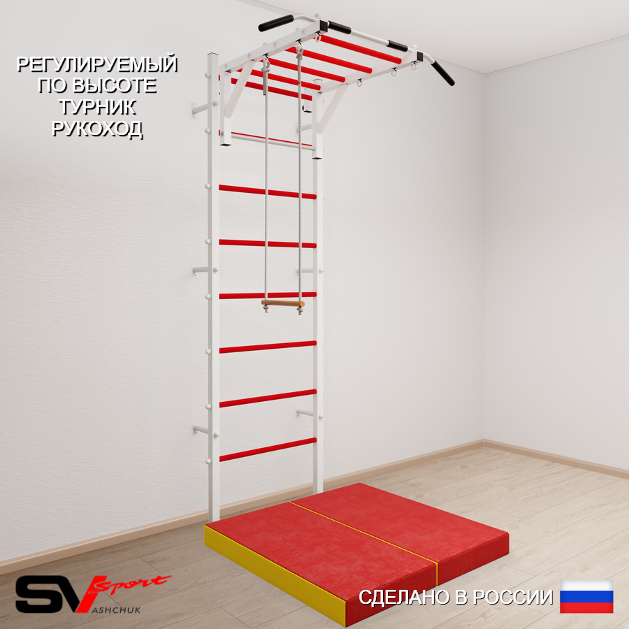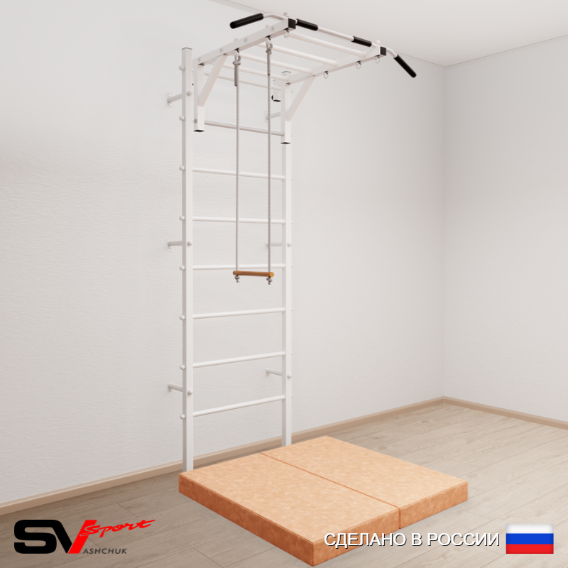 КОМПЛЕКТАЦИЯ: Шведская стенка Sv Sport усиленная (профиль вертикальных стоек 60 х 40 х 2 мм), Турник Sv Sport рукоход к ШС, Трапеция, Спортивный мат 100 х 100 х 10 см складной.