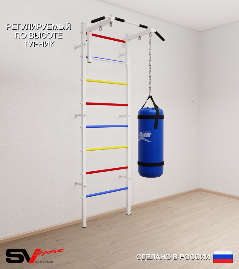 КОМПЛЕКТАЦИЯ: Шведская стенка Sv Sport (профиль вертикальных стоек 40 х 40 х 2 мм), Турник Sv Sport стандарт к ШС, Цепь удлинитель 90см, Мешок боксерский 30кг.