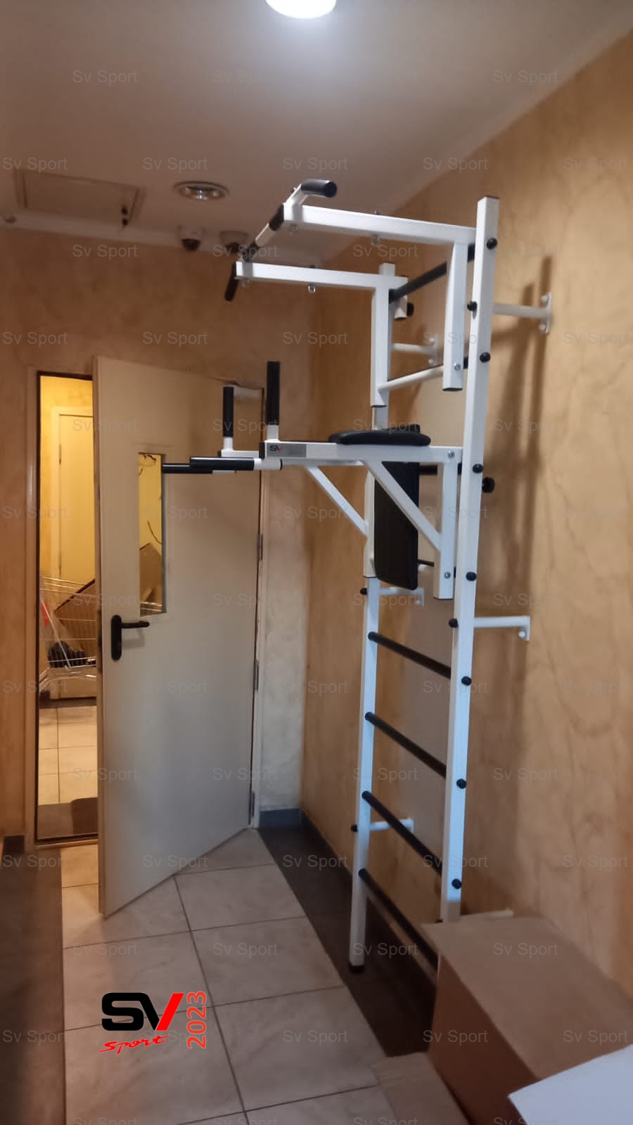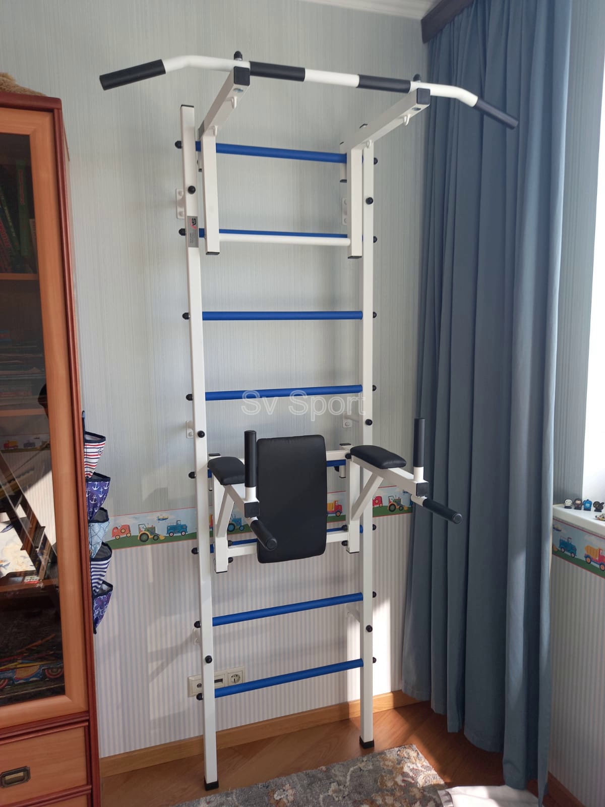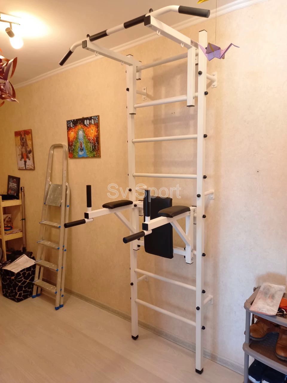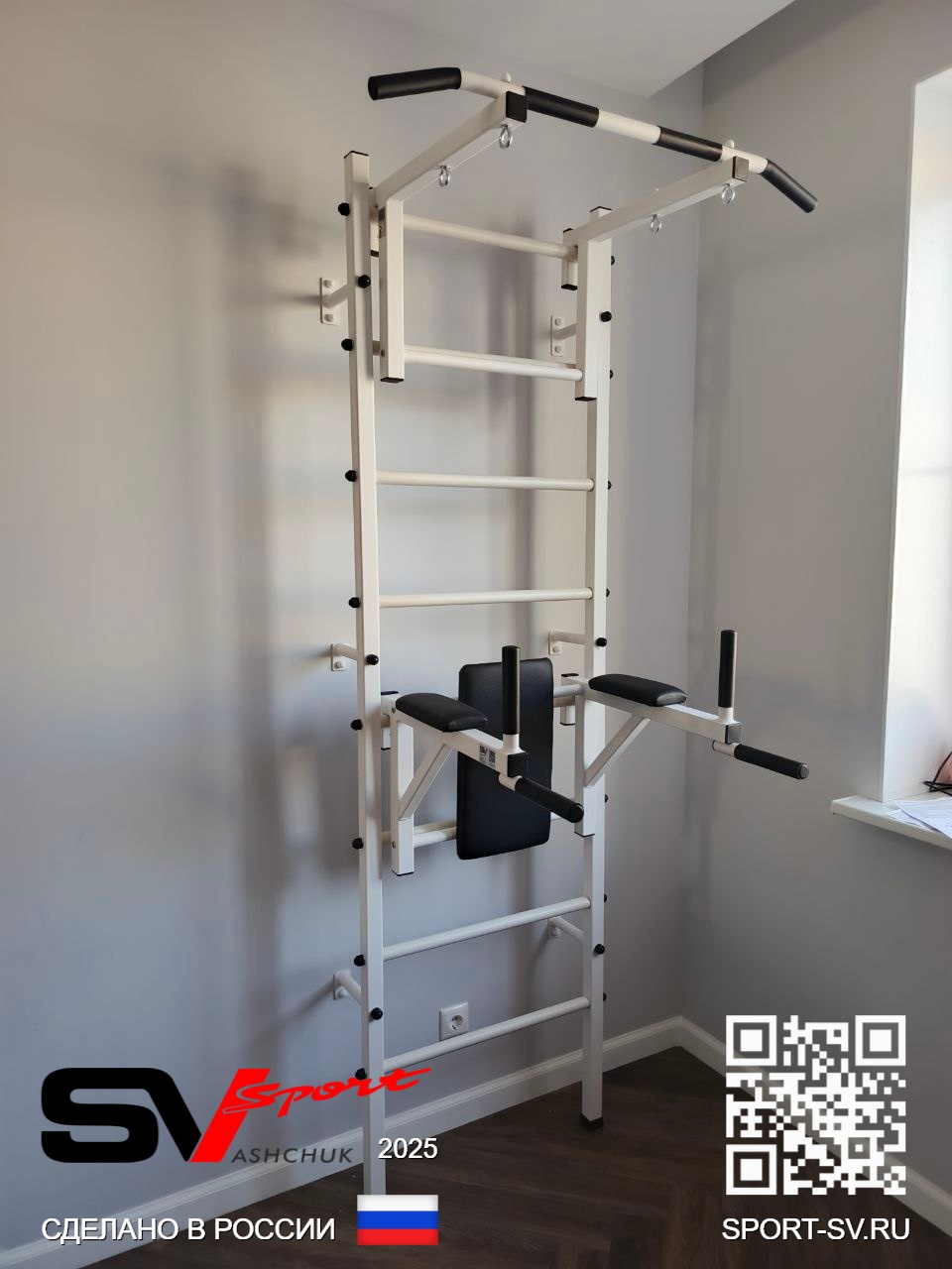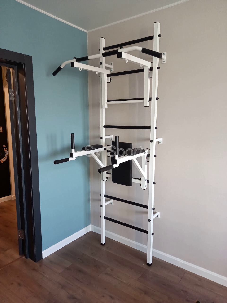 КОМПЛЕКТАЦИЯ: Шведская стенка Sv Sport (профиль вертикальных стоек 40 х 40 х 2 мм), Турник Sv Sport стандарт к ШС, Брусья Sv Sport к ШС.