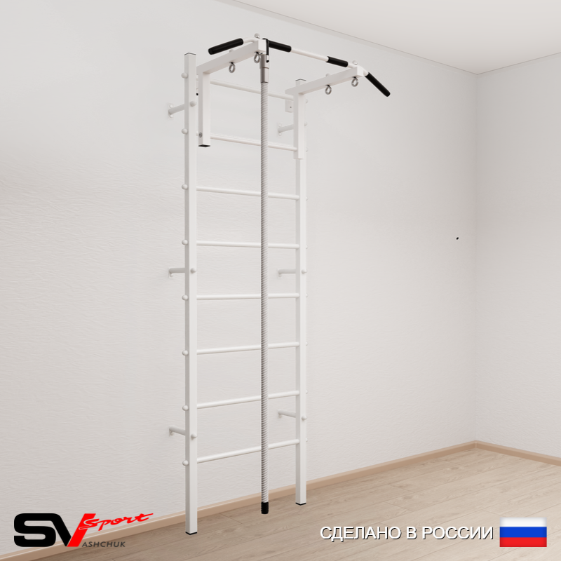 КОМПЛЕКТАЦИЯ: Шведская стенка Sv Sport (профиль вертикальных стоек 40 х 40 х 2 мм), Турник Sv Sport стандарт к ШС, Kанат.