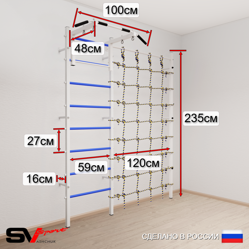Идеальна для дома, обеспечивает комфортное и безопасное выполнение упражнений. Подходит для пользователей разного возраста и уровня подготовки. Компактные размеры позволяют легко разместить даже в небольшом помещении. Эргономичная конструкция обеспечивает устойчивость и долговечность эксплуатации. Купите шведскую стенку Sv Sport – вложите в здоровье и активный образ жизни без лишних затрат пространства и средств!