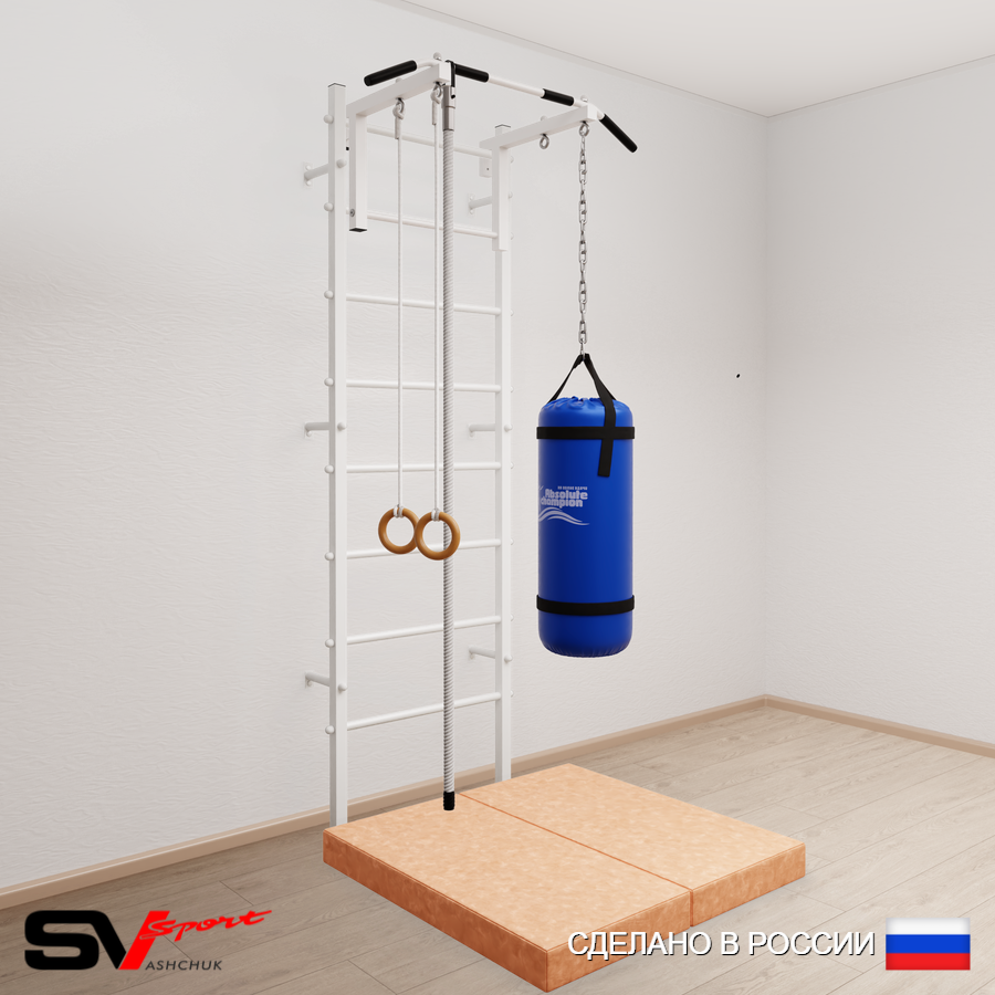 КОМПЛЕКТАЦИЯ: Шведская стенка Sv Sport (профиль вертикальных стоек 40 х 40 х 2 мм), Турник Sv Sport стандарт к ШС, Kанат, Kольца деревянные, Цепь удлинитель 90см, Мешок боксерский 15кг, Спортивный мат 100 х 100 х 10 см складной.