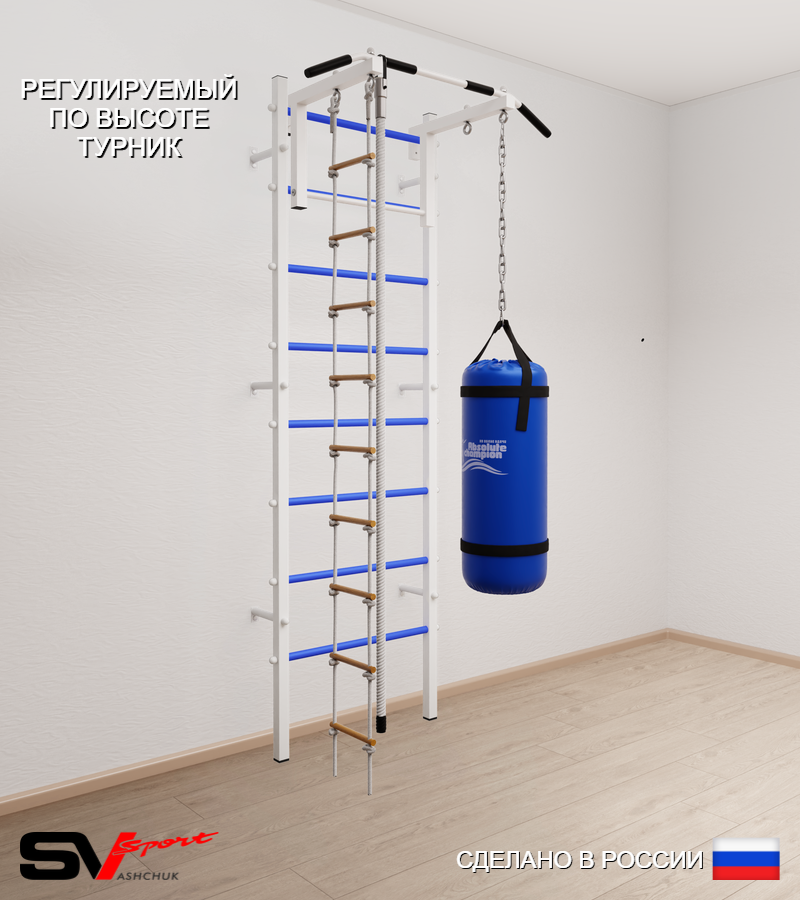 КОМПЛЕКТАЦИЯ: Шведская стенка Sv Sport (профиль вертикальных стоек 40 х 40 х 2 мм), Турник Sv Sport стандарт к ШС, Kанат, Лестница веревочная, Цепь удлинитель 90см, Мешок боксерский 15кг.