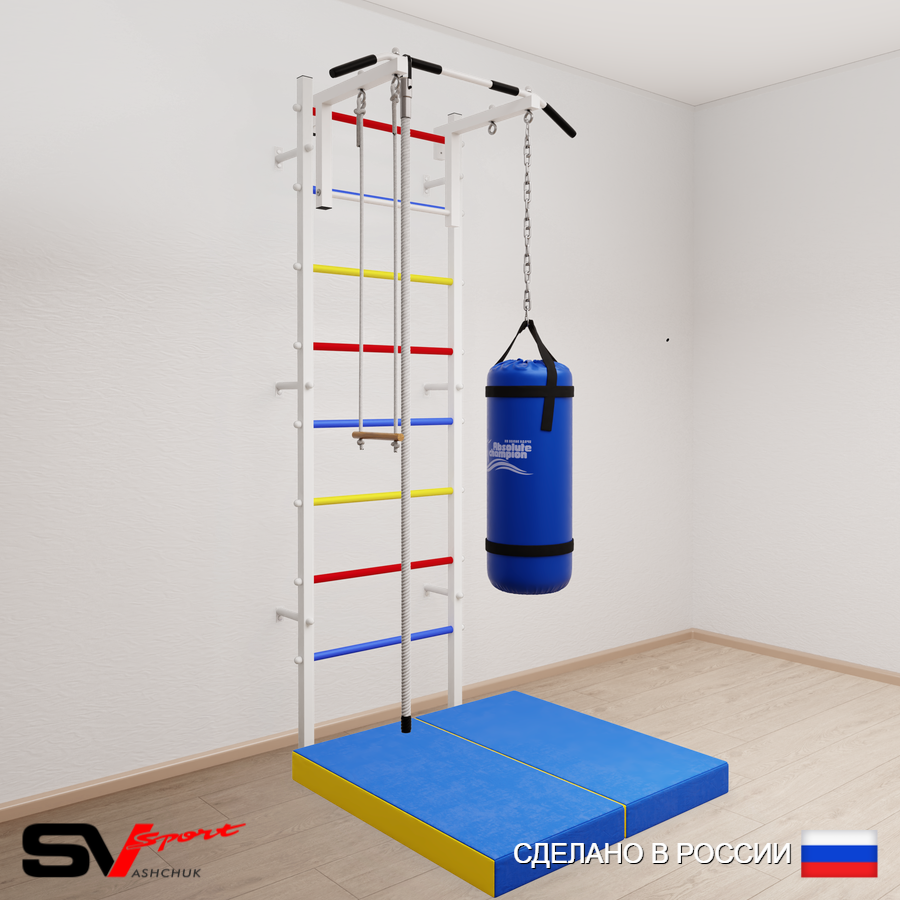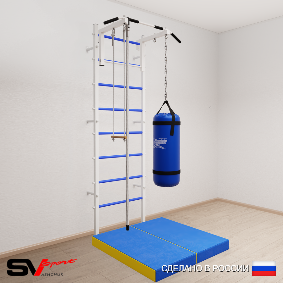 КОМПЛЕКТАЦИЯ: Шведская стенка Sv Sport (профиль вертикальных стоек 40 х 40 х 2 мм), Турник Sv Sport стандарт к ШС, Kанат, Трапеция, Цепь удлинитель 90см, Мешок боксерский 15кг, Спортивный мат 100 х 100 х 10 см складной.