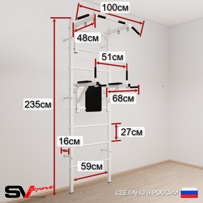 Идеальна для дома, обеспечивает комфортное и безопасное выполнение упражнений. Подходит для пользователей разного возраста и уровня подготовки. Компактные размеры позволяют легко разместить даже в небольшом помещении. Эргономичная конструкция обеспечивает устойчивость и долговечность эксплуатации. Купите шведскую стенку Sv Sport – вложите в здоровье и активный образ жизни без лишних затрат пространства и средств!