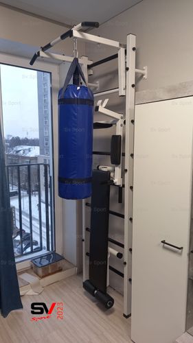 КОМПЛЕКТАЦИЯ: Шведская стенка Sv Sport усиленная (профиль вертикальных стоек 60 х 40 х 2 мм), Турник Sv Sport стандарт к ШС, Брусья Sv Sport к ШС, Скамья для пресса и жима Sv Sport к ШС, Цепь удлинитель 90см, Мешок боксерский 22кг.