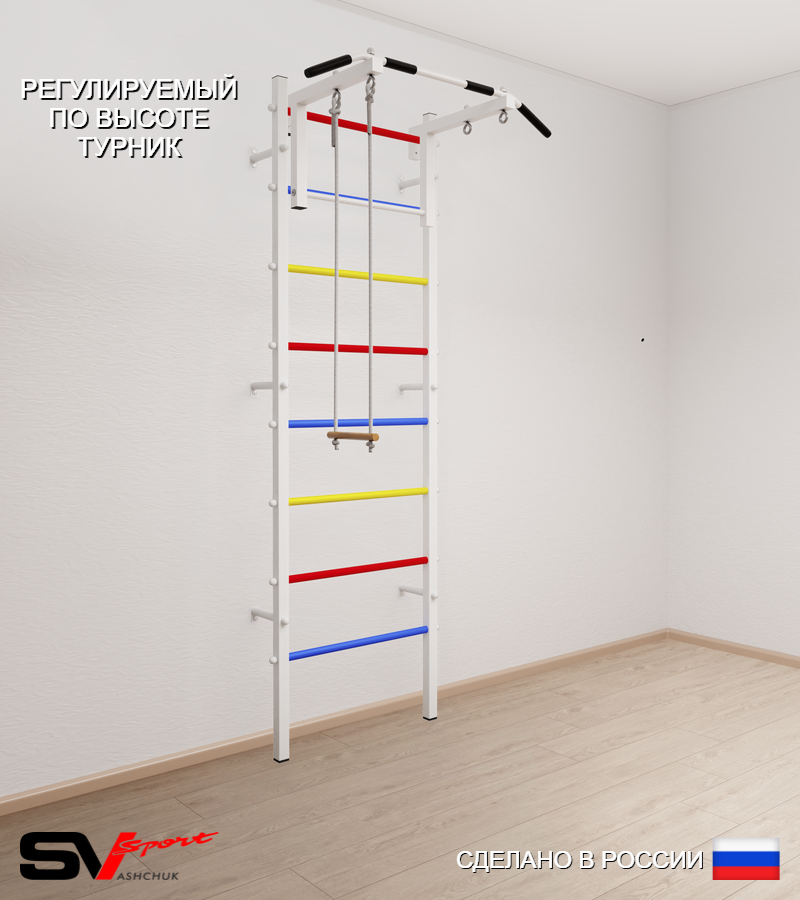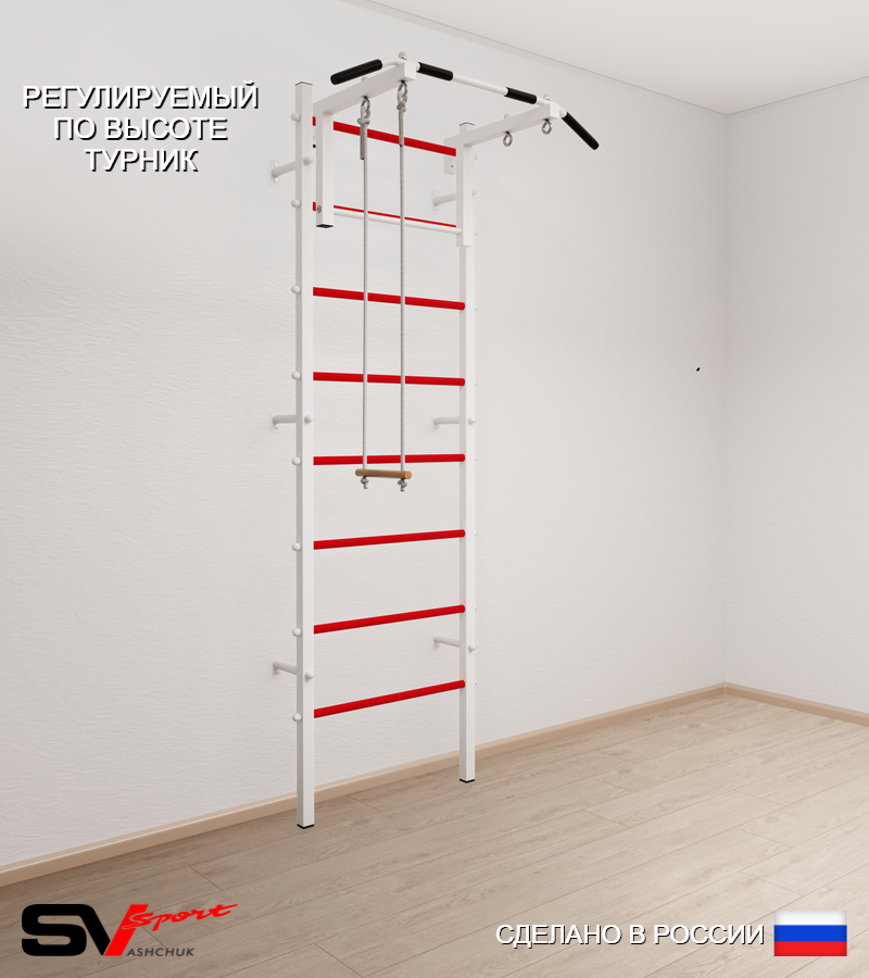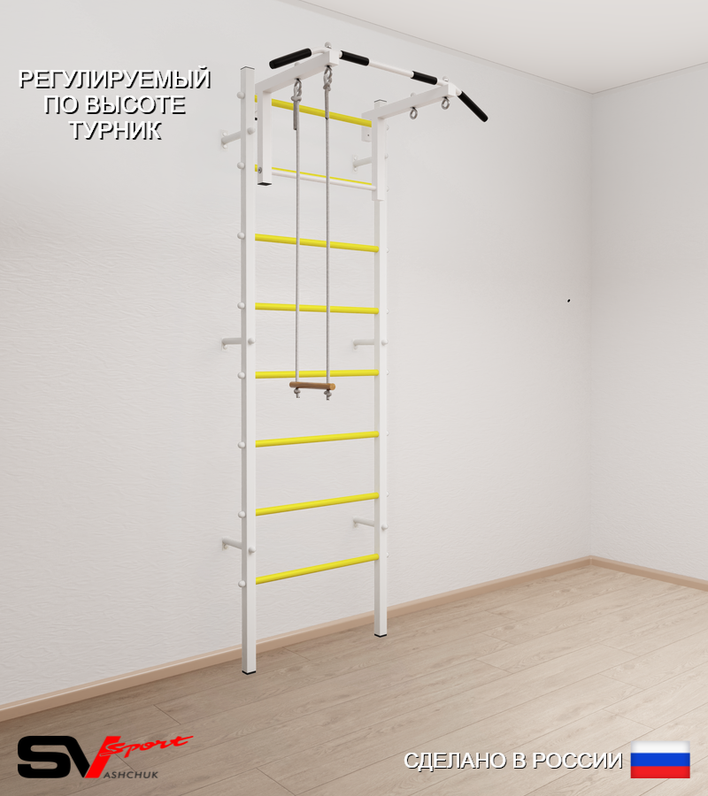 КОМПЛЕКТАЦИЯ: Шведская стенка Sv Sport усиленная (профиль вертикальных стоек 60 х 40 х 2 мм), Турник Sv Sport стандарт к ШС, Трапеция.