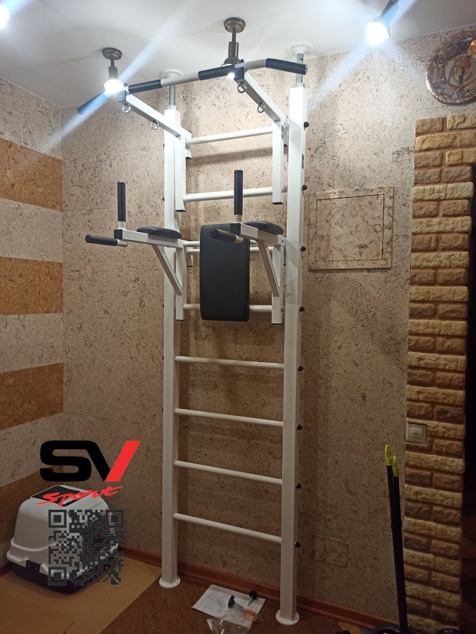 КОМПЛЕКТАЦИЯ: Шведская стенка Sv Sport враспор, Турник Sv Sport стандарт к ШС, Брусья Sv Sport к ШС.