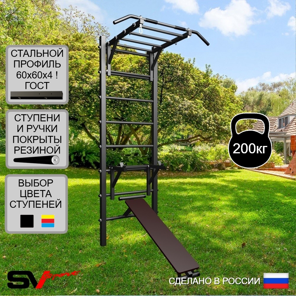 Погрузитесь в мир здорового образа жизни прямо у себя во дворе! Уличная шведская стенка Sv Sport – это идеальный тренажёр для эффективных тренировок на свежем воздухе. Удобные резиновые ступени исключают скольжение и дискомфорт при занятиях. Прочные металлические конструкции выдержат нагрузку до 200 кг, а качественная полимерная окраска защитит от внешних воздействий. Двухлетняя гарантия подтверждает надёжность этой спортивной станции! Станьте ближе к здоровью и силе вместе со Sv Sport !