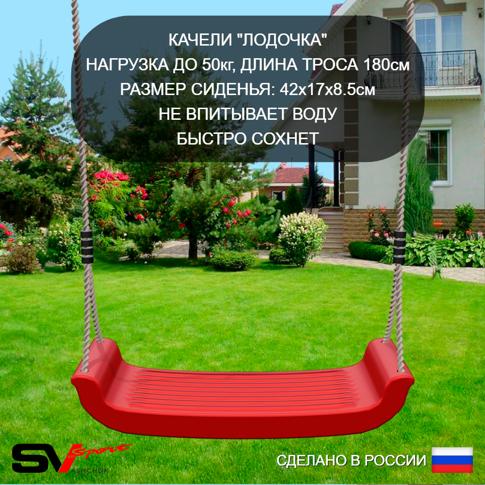 КОМПЛЕКТАЦИЯ: Каркас УК Sv Sport 1.8м, Качели пластиковые "Лодочка", Подвесы для качелей на втулке Sv Sport 1 компл.