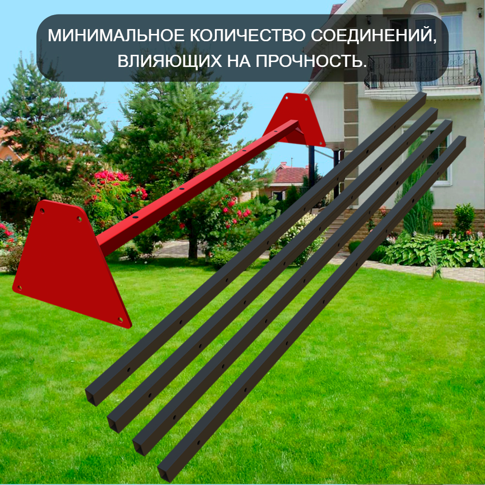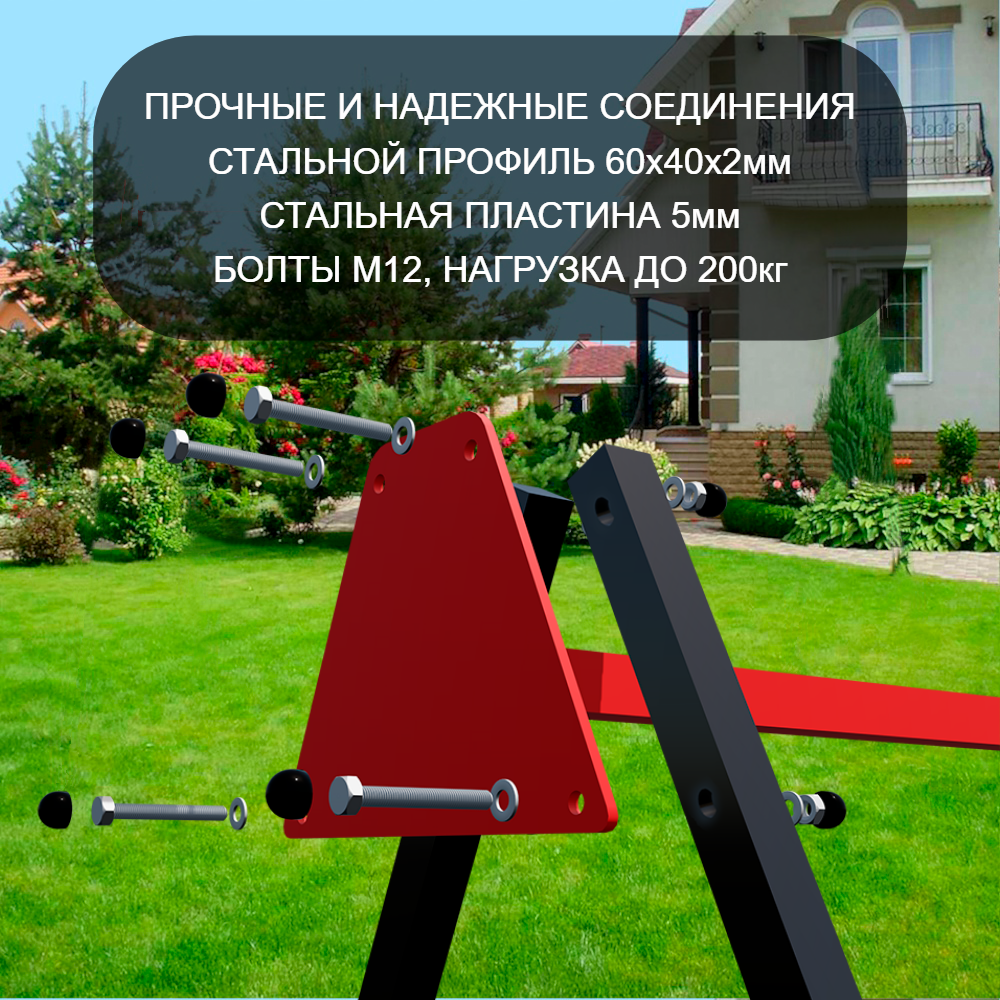 Уличные качели Sv Sport (перекладина) изготовлены из профильной трубы 60х40 мм, толщиной 2 мм. Крепление перекладины изготовлено из пластины, толщиной 5 мм. Окрашены уличные качели качественной, импортной порошковой краской в 2 слоя, которая устойчива к истиранию и температурным перепадам. Все торцы, болты, гайки заглушены пластиковыми заглушками отличного качества. Использующиеся болты и гайки оцинкованы и соответствуют требованиям ГОСТ. Устанавливаются путем бетонировки на глубину не менее 30 см.
